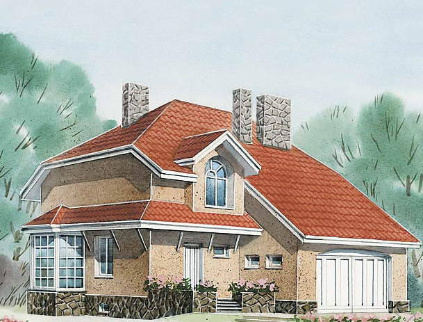 Дом, популярность которого у наших заказчиков представляется вполне оправданной. Убедитесь сами, насколько привлекателен этот двухэтажный особняк с эркером. Великолепно освещенная гостиная первого этажа, кухня, чьи габариты позволят разместить здесь любое кухонное оборудование, санитарный блок – полноценная зона дневного пребывания. Три спальни, детская и просторная ванная комната формируют приватную зону мансардного этажа. В подвале оборудованы спортзал и сауна. И при этом в доме нет никаких запутанных коридоров и тесных закоулков, все логично и рационально. Проект разработан в нескольких вариантах.